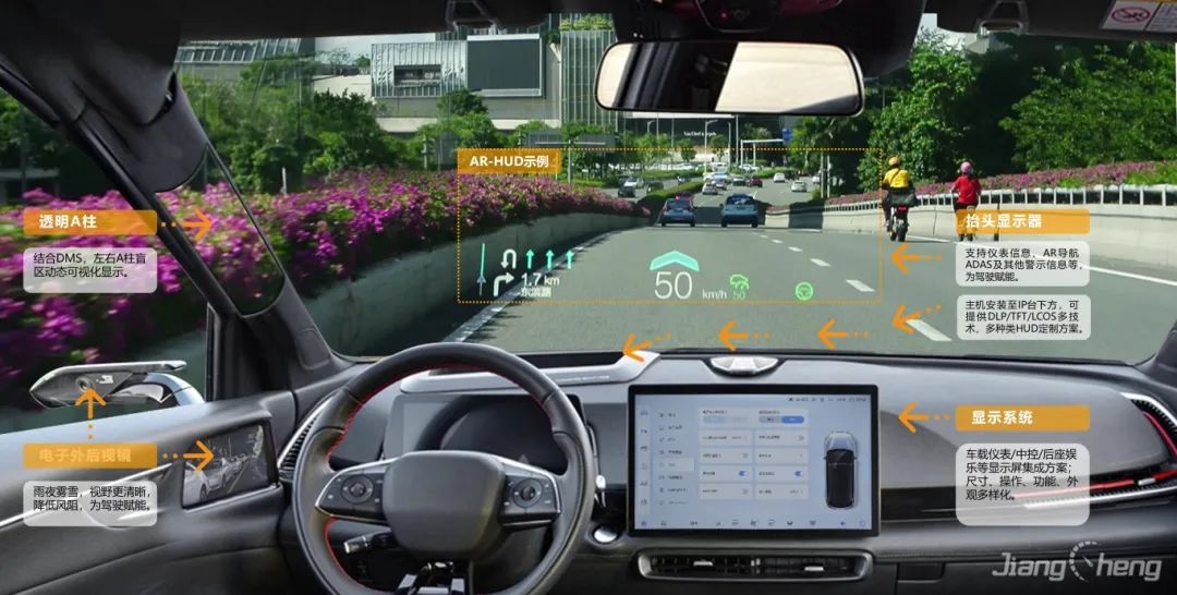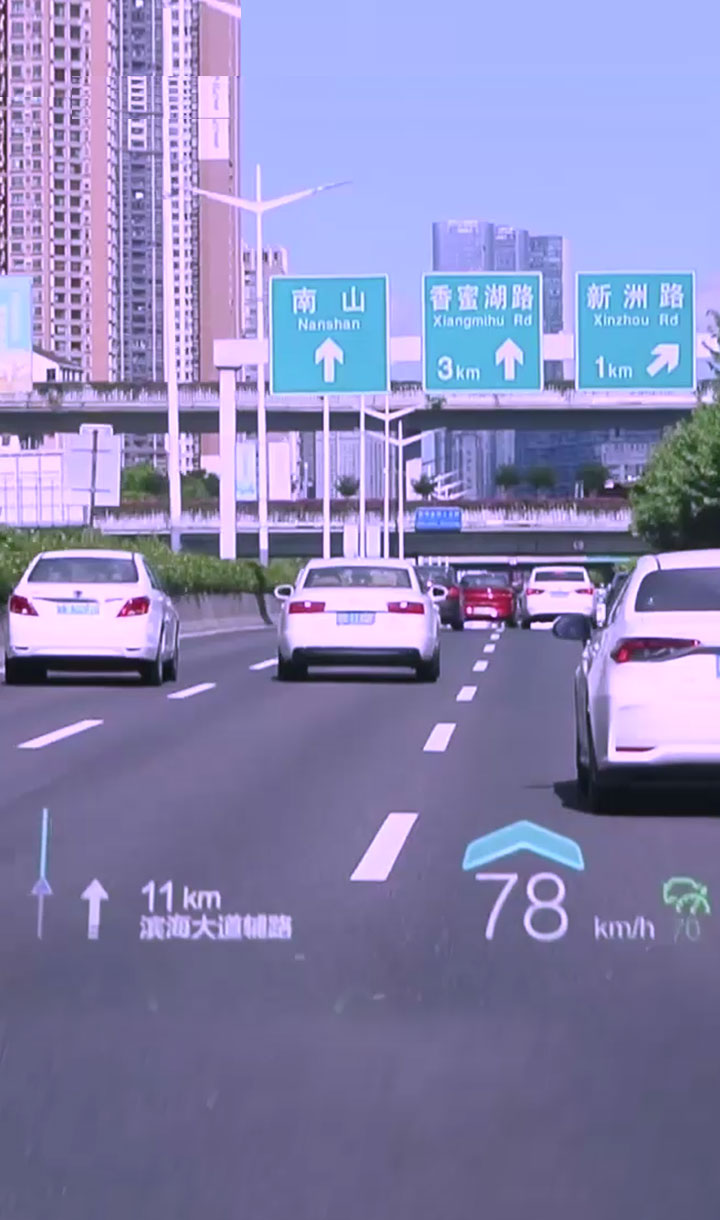 基于復(fù)雜變量環(huán)境完成大尺寸、小體積的光機(jī)設(shè)計,并采用多數(shù)據(jù)融合算法實現(xiàn)導(dǎo)航、ADAS等輔助駕駛信息在真實路況上的疊加、融合顯示,提升駕駛安全性的同時給予更酷炫、更智能的駕駛體驗。